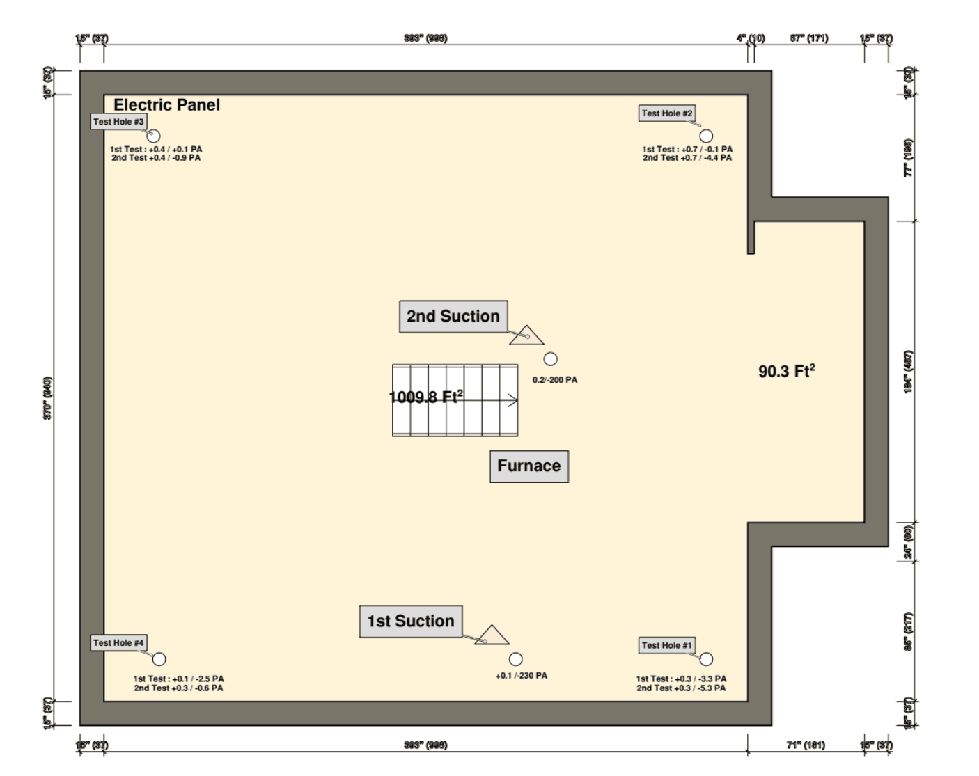 This test allows us to customize the RADON fan and design the Sub-Slab Depressurization (SSD) system to match the home’s unique conditions.