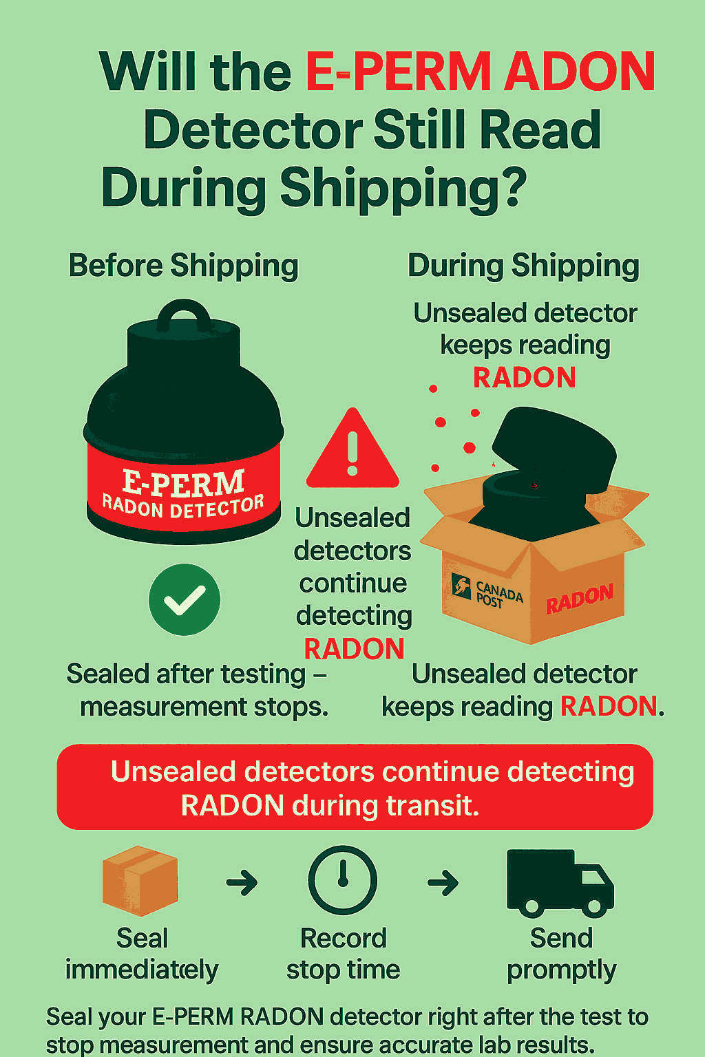 📦 If not sealed properly, it will keep detecting RADON during shipping, which can affect your results - especially for short-term tests.