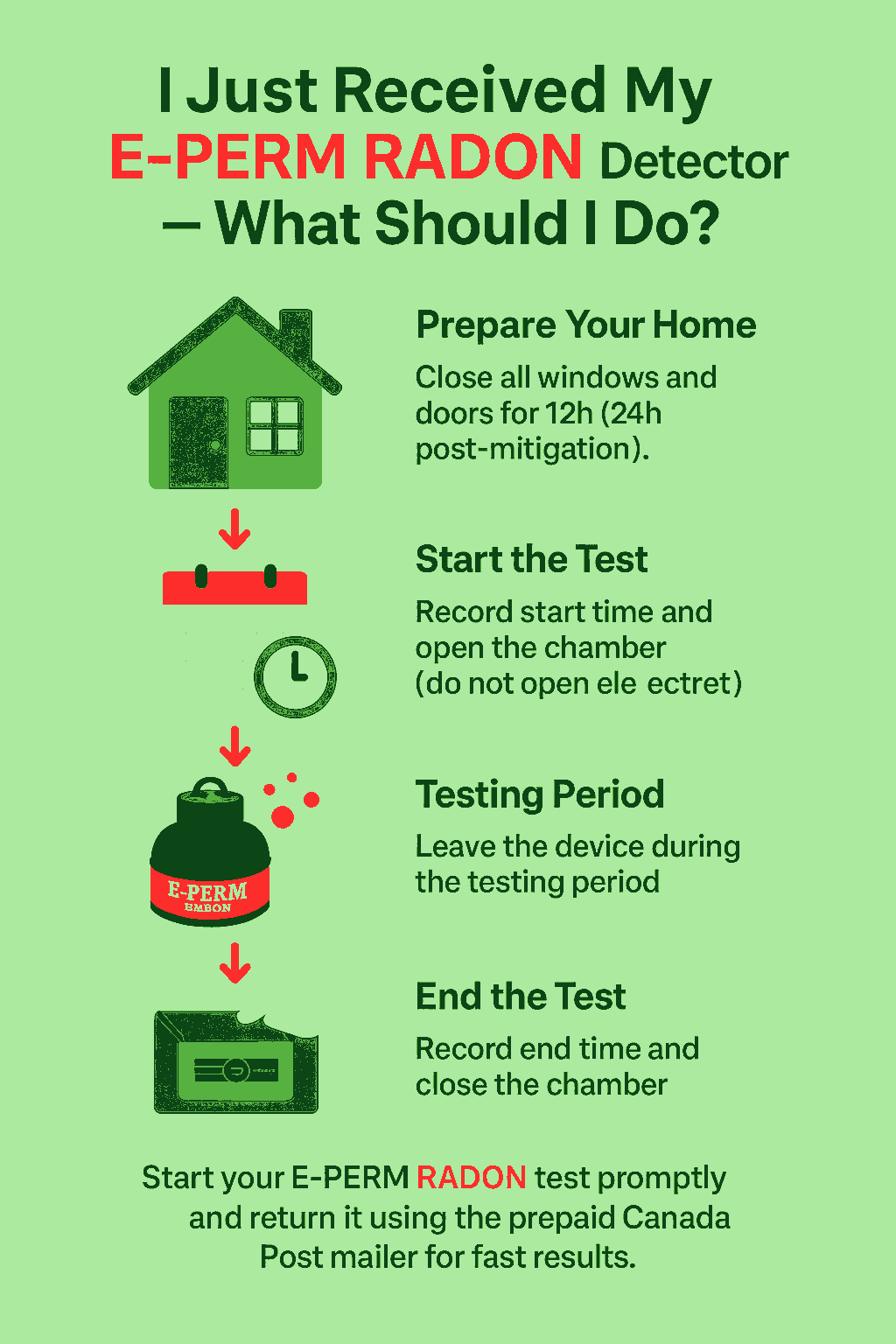 Follow these simple steps to start your E-PERM RADON test: