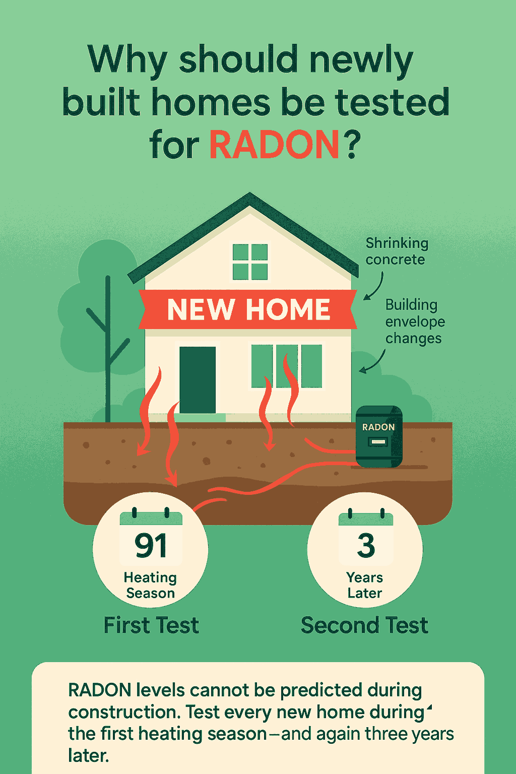 Even in brand-new homes, RADON levels cannot be predicted or measured during construction.