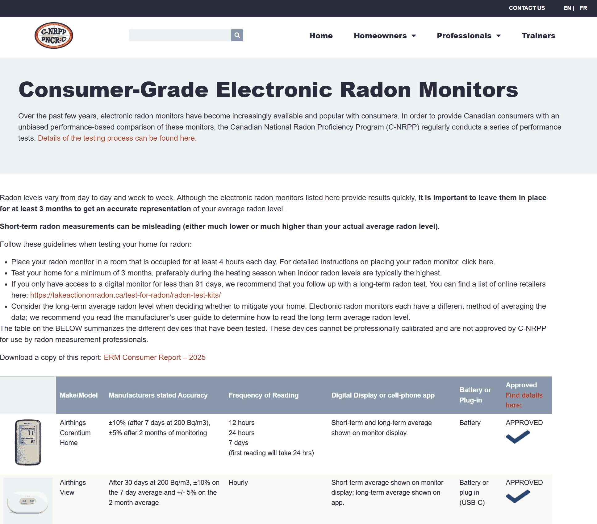 Over the past several years, consumer-grade electronic radon monitors have become more widely available. The C-NRPP offers an independent performance report comparing these devices. CNRPP