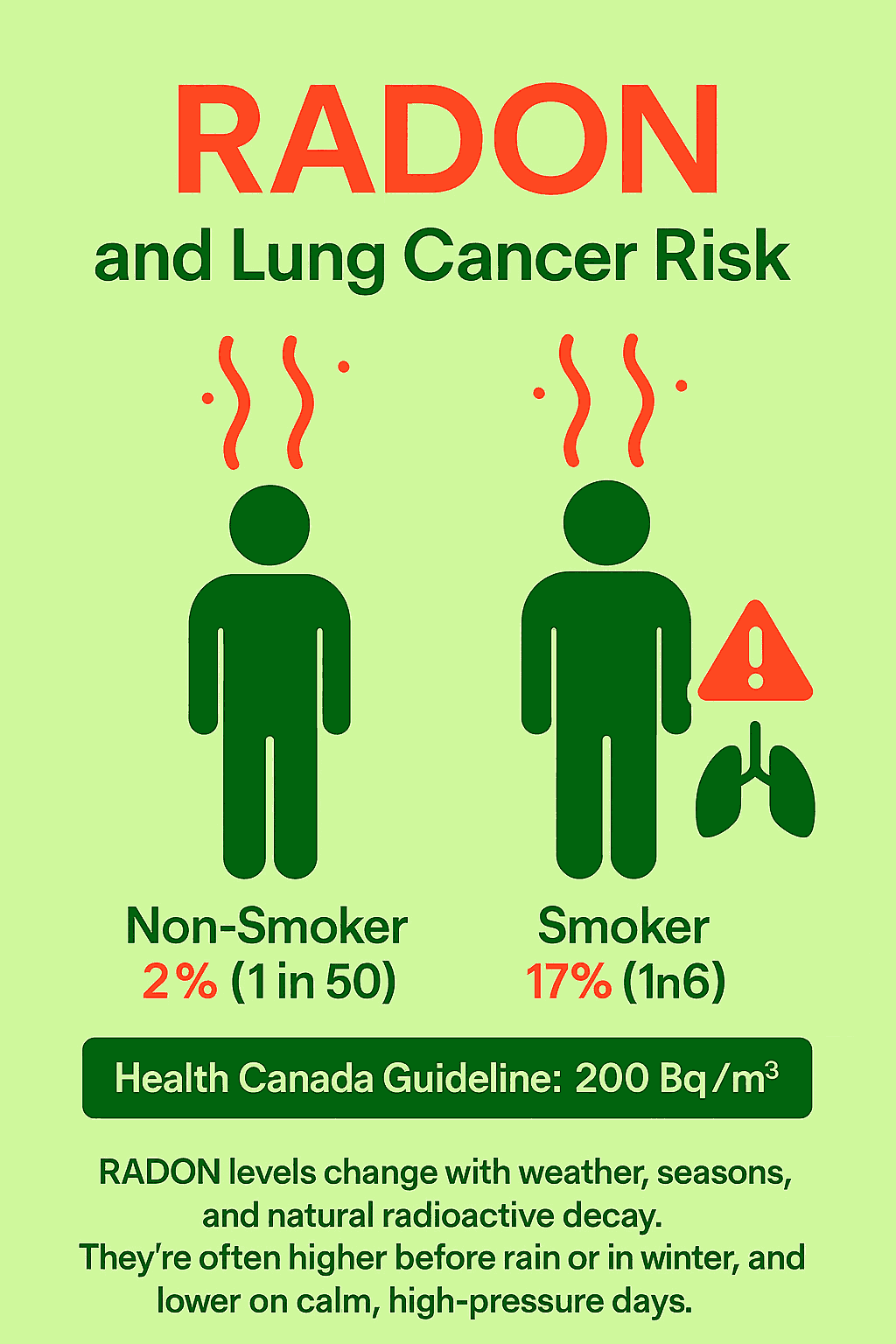 Knowing your home’s radon level helps protect your health, as long-term exposure increases the risk of lung cancer.