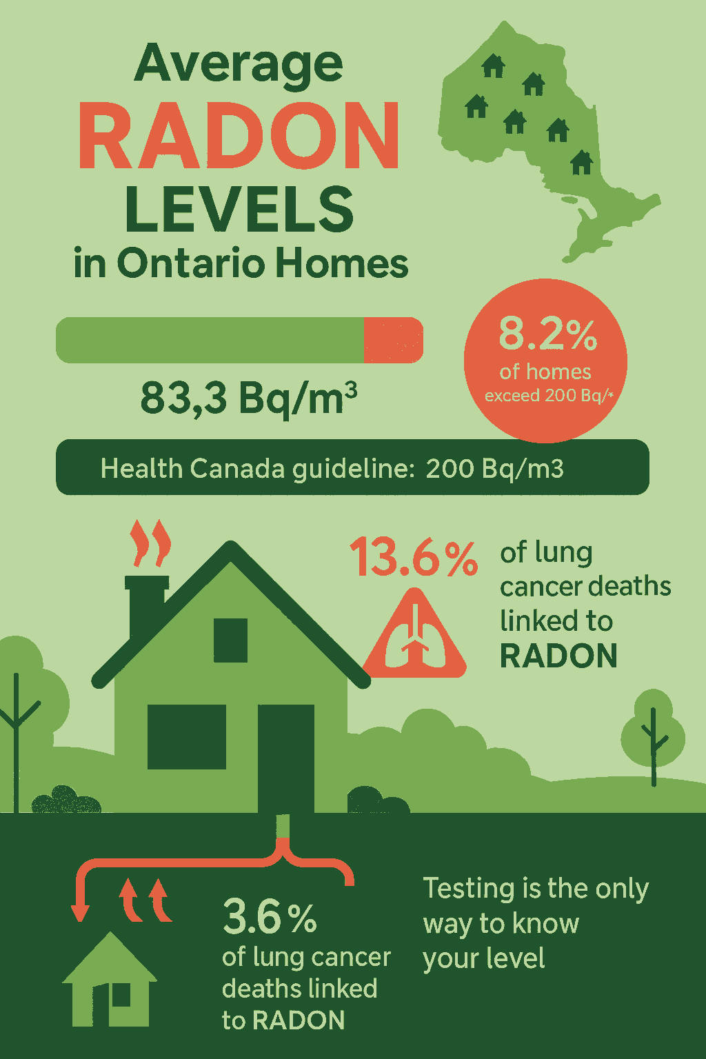 - An estimated 13.6% of lung cancer deaths in Ontario are linked to RADON exposure.