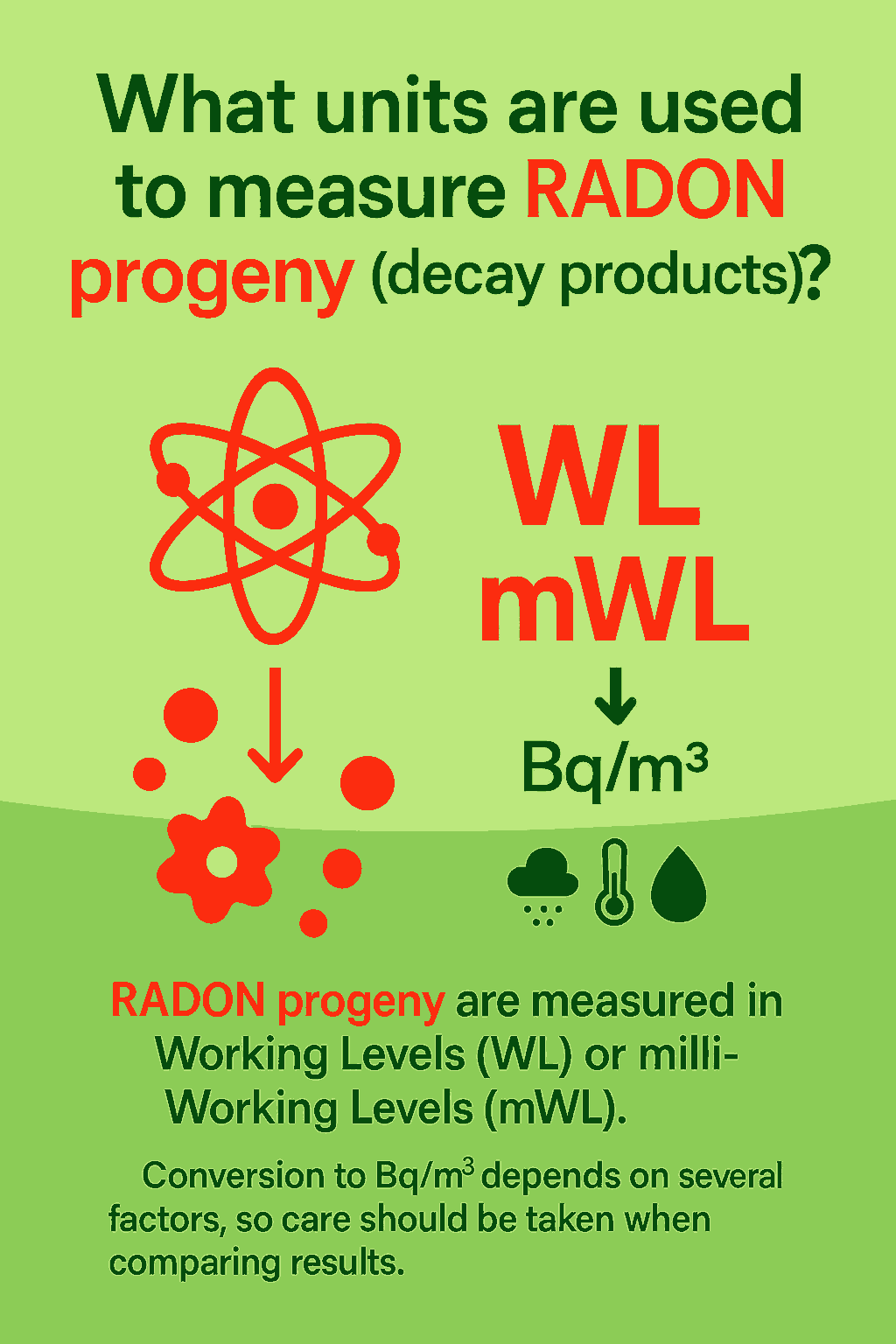 Converting from WL to Bq/m³ depends on several environmental factors, so caution is needed when comparing RADON progeny measurements to RADON gas levels.