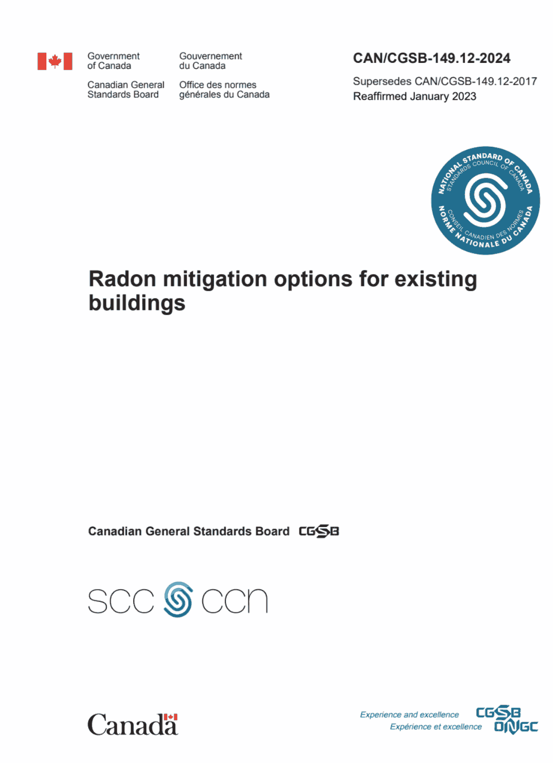 This Canadian National Standard outlines technical methods to reduce indoor radon in existing buildings. It identifies Active Soil Depressurization (ASD) as the most effective technique - typically lowering levels by 90 % or more - and balanced ventilation (HRV/ERV) as a complementary or alternative solution. The standard covers fan sizing, pipe requirements, communication testing, and sealing practices, aiming to achieve radon concentrations below 200 Bq/m³, in line with Health Canada guidelines, and emphasizes work by C-NRPP-certified professionals