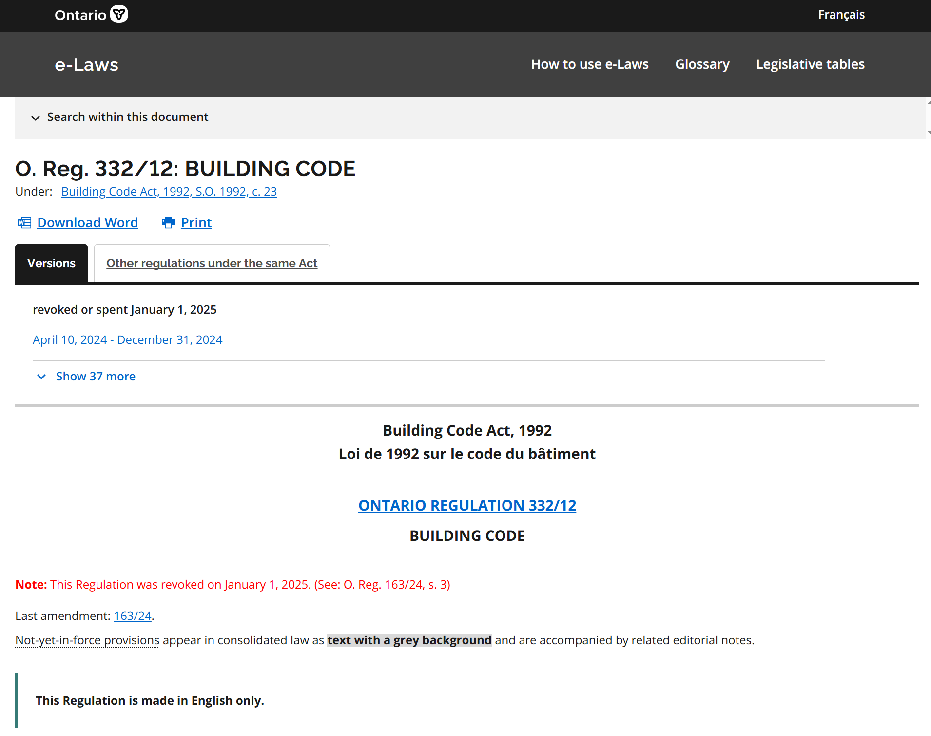 Ontario Building Code (O. Reg. 332/12) – Key Reference